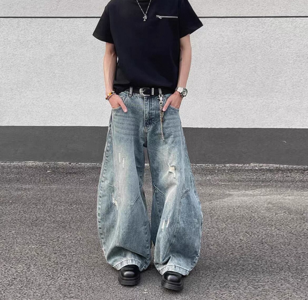 Baggy denim ヴィンテージ ウォッシュ加工 S0005