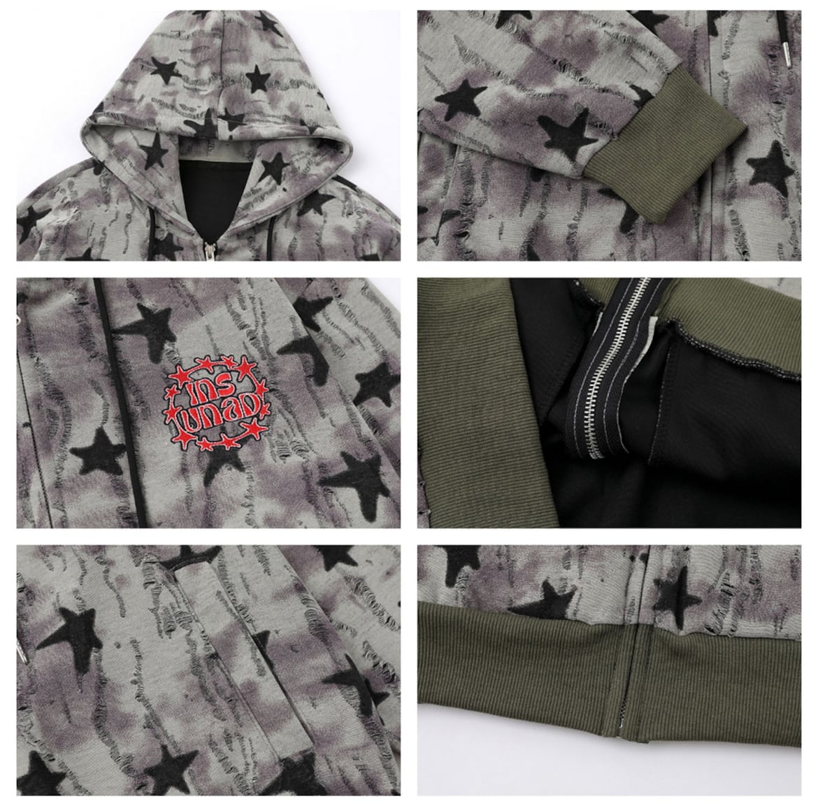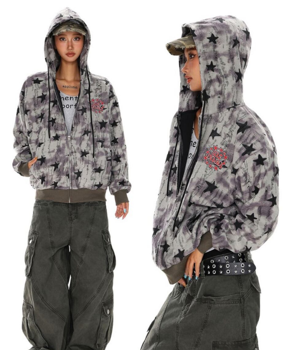 VINTAGE ストリート 星ダメージ加工 ジップパーカー S0081